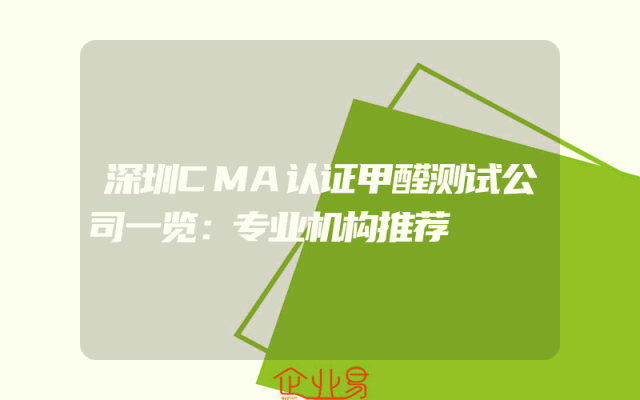 - 深圳CMA认证甲醛测试公司一览:专业机构推荐
