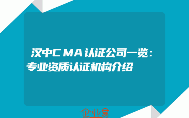 - 汉中CMA认证公司一览:专业资质认证机构介绍