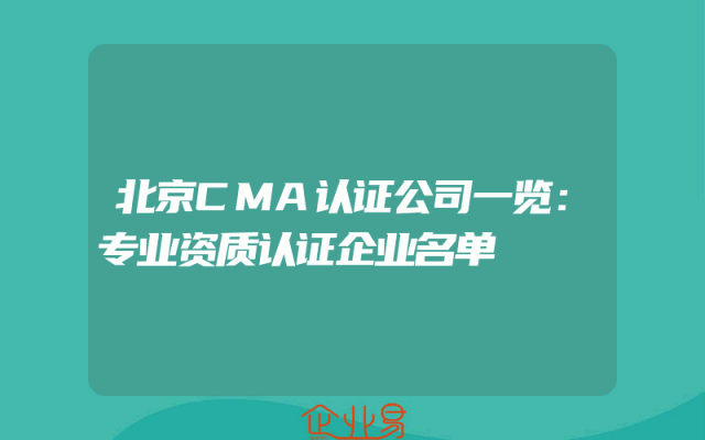 - 北京CMA认证公司一览:专业资质认证企业名单