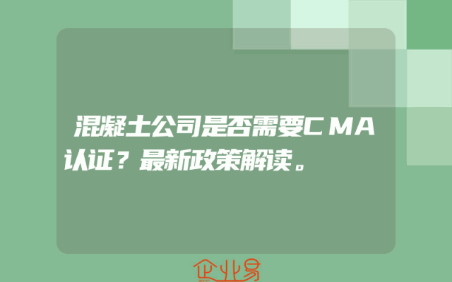 - 混凝土公司是否需要CMA认证?最新政策解读。