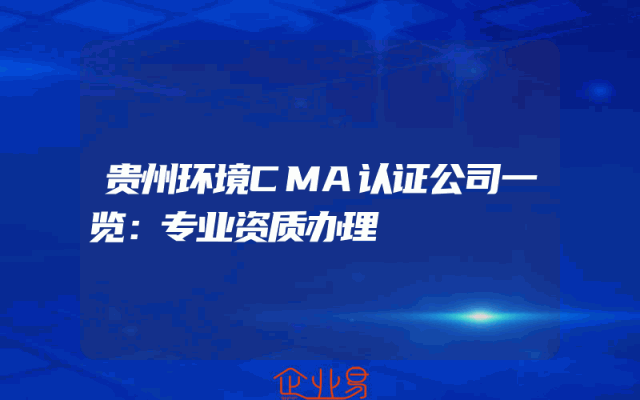 - 贵州环境CMA认证公司一览:专业资质办理解析一、CMA认证及环境资质概述首先,我们来简要了解CMA认证与环境资质的概念。CMA认证,即实验室资质认定,是针对实验室检测能力的权威认证。对于环境检测领域而言,获取CMA认证意味着实验室具备了按照