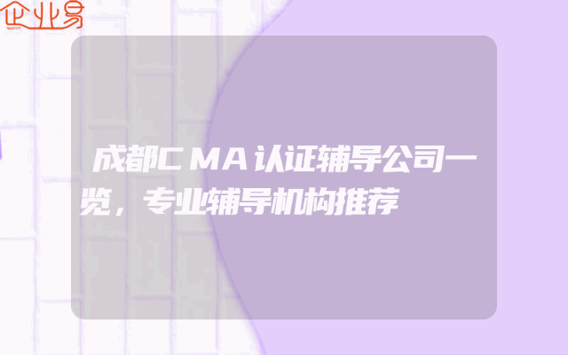 - 成都CMA认证辅导公司一览——专业辅导机构推荐一、引言随着市场竞争的日益激烈,企业对内部管理和外部服务的要求越来越高,这也促使了企业对资质认证的重视。CMA认证作为国际上最具权威性的管理认证之一,受到了众多企业的青睐。在成都,有许多专业的C