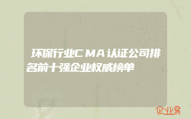 - 环保行业CMA认证公司排名前十强企业权威榜单