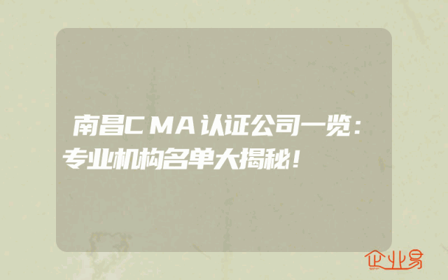 - 南昌CMA认证公司一览:专业机构名单大揭秘!