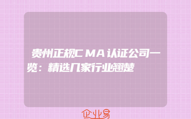 - 贵州正规CMA认证公司一览:精选几家行业翘楚