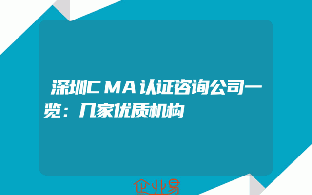 - 深圳CMA认证咨询公司一览:几家优质机构