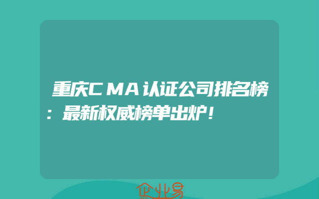 - 重庆CMA认证公司排名榜:最新权威榜单出炉!