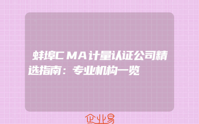 - 蚌埠CMA计量认证公司精选指南:专业机构一览