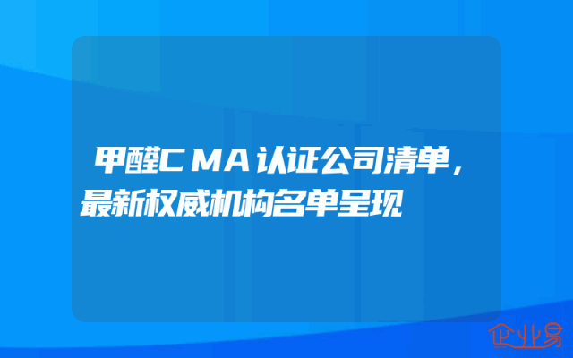 - 甲醛CMA认证公司清单,最新权威机构名单呈现