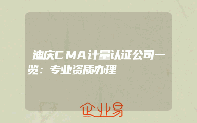 - 迪庆CMA计量认证公司一览:专业资质办理