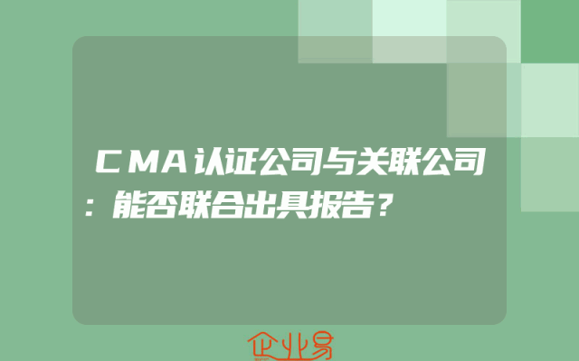 - CMA认证公司与关联公司:能否联合出具报告?一、了解CMA认证公司及其关联公司的基本关系CMA认证公司作为专业从事认证服务的机构,其在企业服务行业中扮演着重要的角色。关联公司则指的是与CMA认证公司在业务、股权或其他方面存在关联关系的公司。