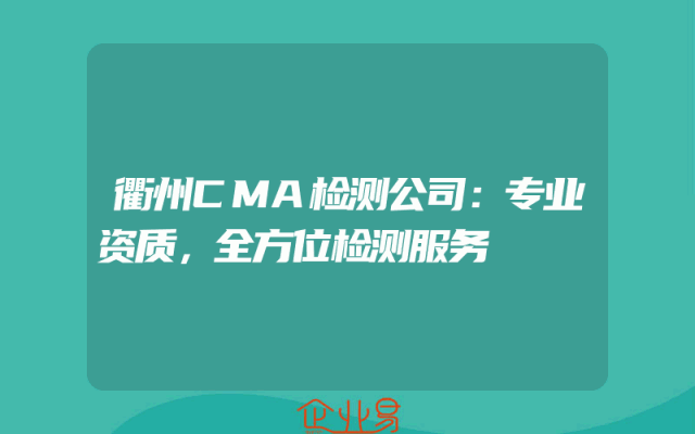 - 衢州CMA检测公司:专业资质,全方位检测服务