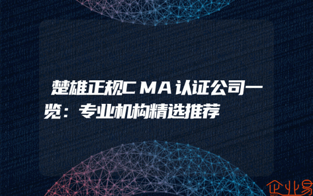 - 楚雄正规CMA认证公司一览:专业机构精选推荐