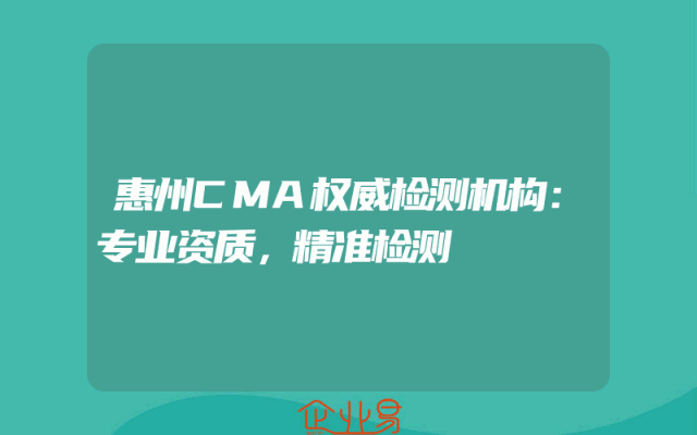 - 惠州CMA权威检测机构:专业资质,精准检测