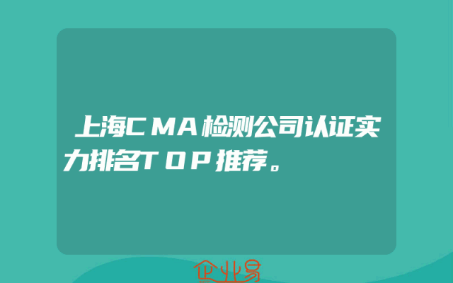 - 上海CMA检测公司认证实力排名TOP推荐。