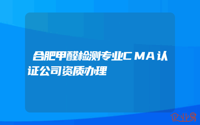- 合肥甲醛检测专业CMA认证公司资质办理
