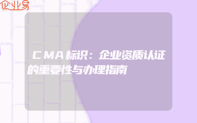 - CMA标识:企业资质认证的重要性与办理指南一、CMA标识与企业资质认证的重要性在当今竞争激烈的市场环境中,企业资质认证对于提升企业形象、增强客户信任度以及拓展业务领域具有不可替代的作用。CMA标识作为国际上广泛认可的资质认证之一,更是企业综