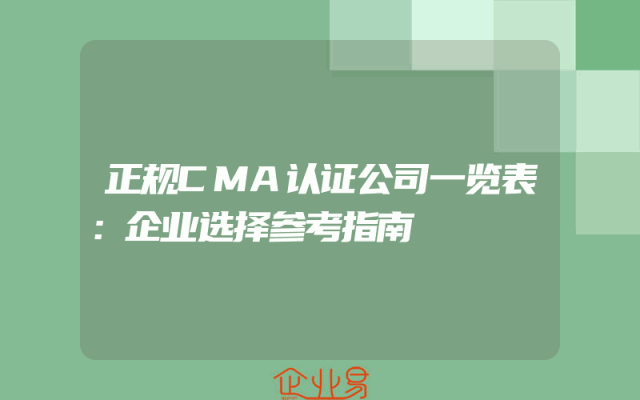 - 正规CMA认证公司一览表:企业选择参考指南