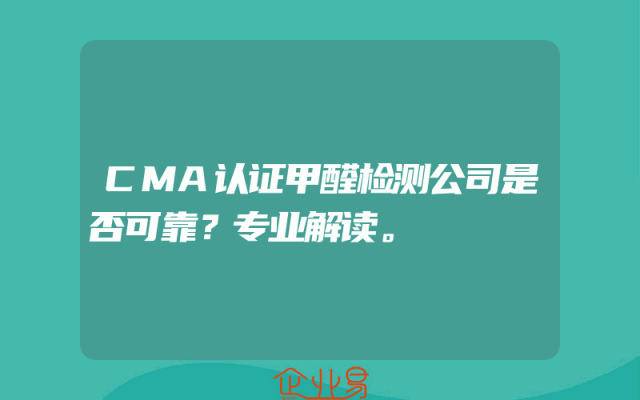 - CMA认证甲醛检测公司是否可靠?专业解读。