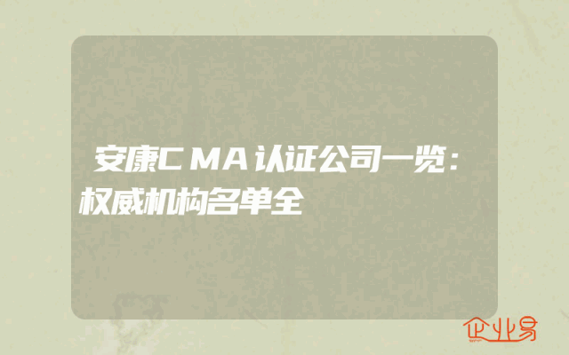 - 安康CMA认证公司一览:权威机构名单全