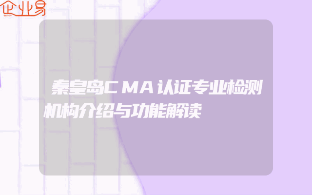 - 秦皇岛CMA认证专业检测机构介绍与功能解读