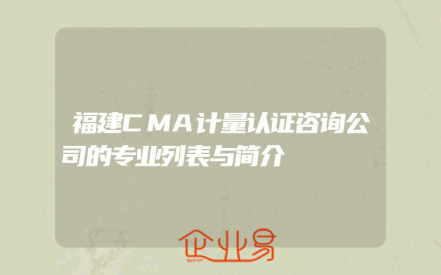 - 福建CMA计量认证咨询公司的专业列表与简介