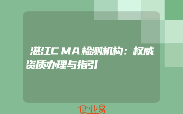 - 湛江CMA检测机构:权威资质办理与指引