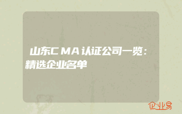 - 山东CMA认证公司一览:精选企业名单解析一、引言随着市场竞争的日益激烈,企业对质量管理的重视程度不断提升。CMA认证作为衡量企业质量管理水平的重要标准之一,越来越受到企业的关注。在山东省,不少企业致力于获取CMA认证,以提升自身的管理水平和