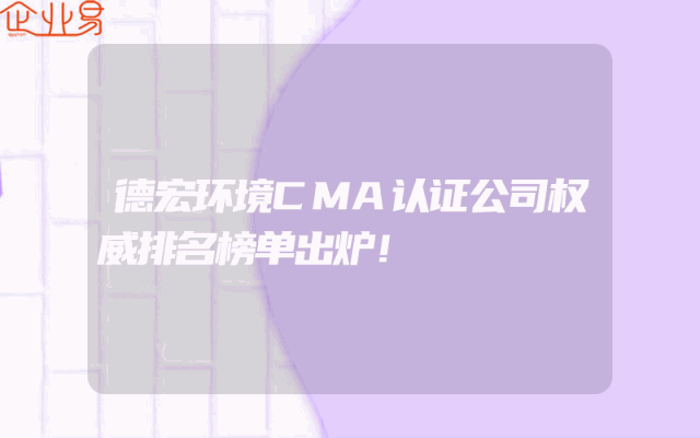 - 德宏环境CMA认证公司权威排名榜单出炉!