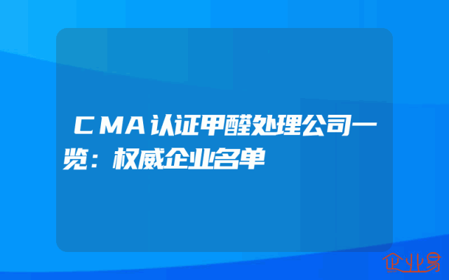 - CMA甲醛认证公司有哪些表现突出的企业?