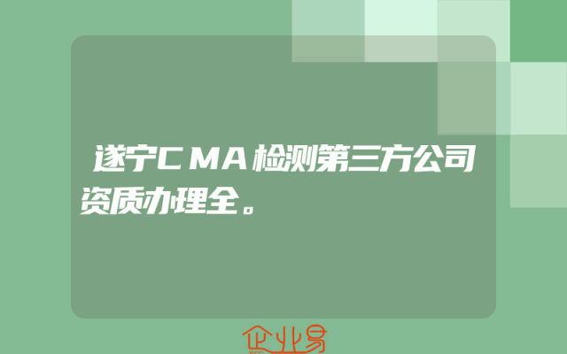 - 遂宁CMA检测第三方公司资质办理全解析一、了解CMA检测及其重要性在现代企业管理中,产品质量是生命线,而CMA检测则是保障产品质量的重要手段。CMA(中国计量认证/校准)检测对于第三方实验室而言,是开展检测工作的必备资质。遂宁地区的