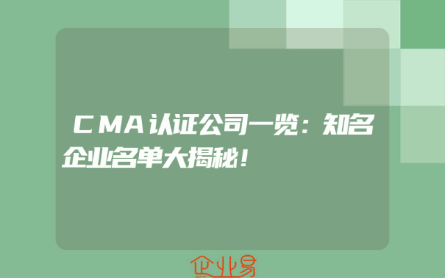 - CMA认证公司一览:知名企业名单大揭秘!一、引言在当今竞争激烈的市场环境中,企业的资质和认证成为了衡量其综合实力与信誉的重要标准。CMA认证,作为衡量检测、校准实验室能力的权威认证,受到了广大企业的重视。本文将为您揭示那些获得CMA