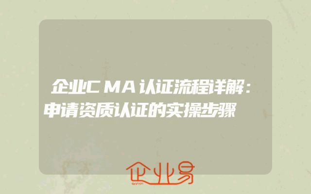 - 企业CMA认证流程详解:申请资质认证的实操步骤