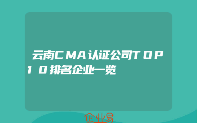 - 云南CMA认证公司TOP10排名企业一览