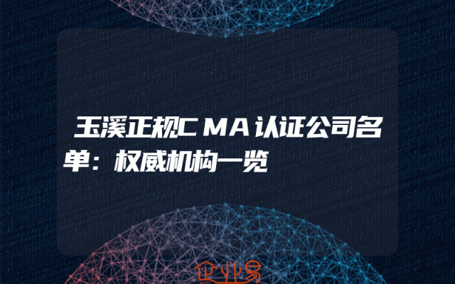 - 玉溪正规CMA认证公司名单:权威机构一览