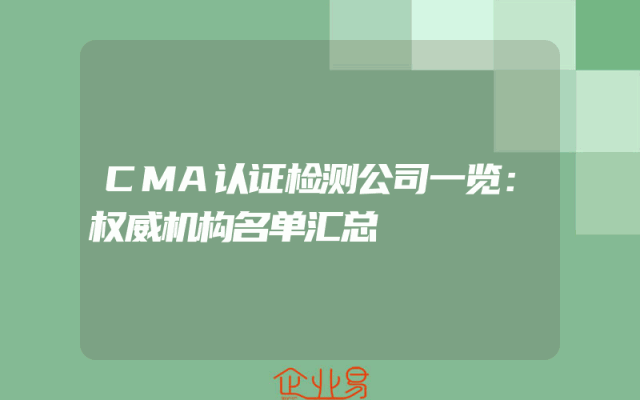 - CMA认证检测公司一览:权威机构名单汇总