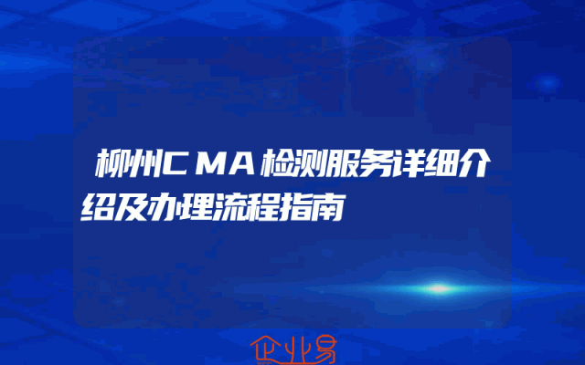 - 柳州CMA检测服务详细介绍及办理流程指南