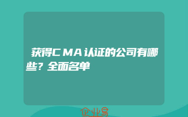 - 获得CMA认证的公司有哪些?全面名单