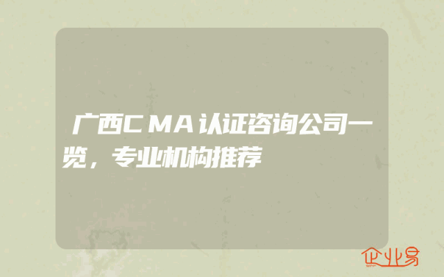 - 广西CMA认证咨询公司一览,专业机构推荐