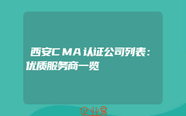 - 西安CMA认证公司列表:优质服务商一览一、引言随着市场经济的快速发展,企业对质量管理的需求日益增长,CMA认证作为衡量企业质量管理水平的重要标准之一,受到了广泛关注。在古都西安,众多企业投身于CMA认证服务领域,为各企业提供专业的咨询与辅导