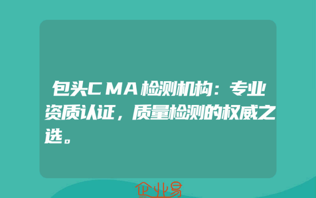 - 包头CMA检测机构:专业资质认证,质量检测的权威之选。