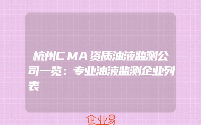 - 杭州CMA资质油液监测公司一览:专业油液监测企业列表