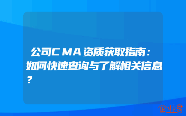 - 公司CMA资质获取指南:如何快速查询与了解相关信息?