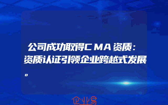 - 公司成功取得CMA资质:资质认证引领企业跨越式发展一、资质认证的成功取得在竞争激烈的市场环境下,我公司经过不懈努力,成功取得了CMA(注册管理会计师)资质。这一资质认证不仅是对公司财务管理能力的权威认可,更是企业跨越式发展的重要里程