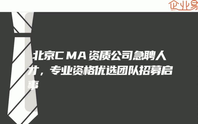 - 北京CMA资质公司急聘人才,专业资格优选团队招募启事