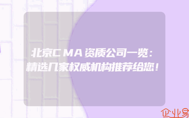 - 北京CMA资质公司一览:精选几家权威机构推荐给您!