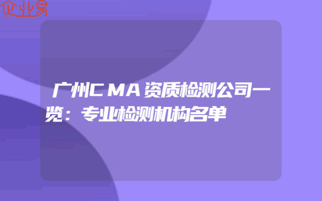 - 广州CMA资质代办公司一览,专业代办机构推荐