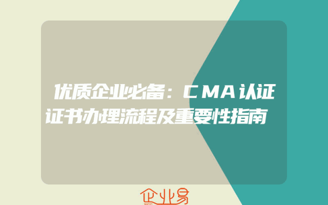 - 优质企业必备:CMA认证证书办理流程及重要性指南