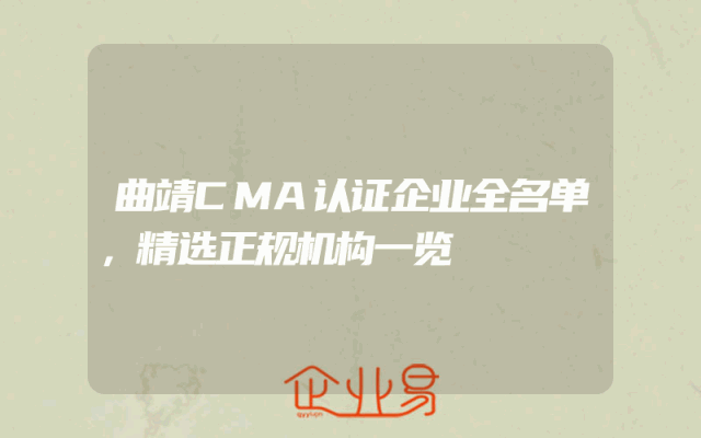 - 曲靖CMA认证企业全名单,精选正规机构一览