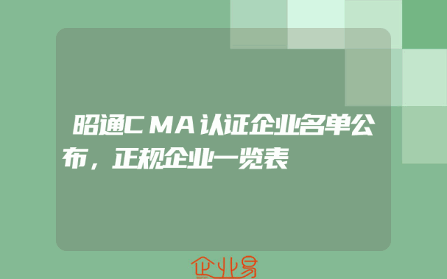 - 昭通CMA认证企业名单公布,正规企业一览表